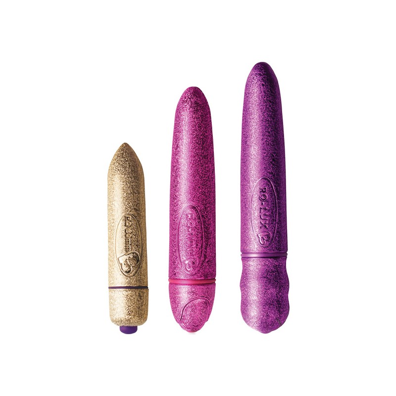 Fantástico kit sensual y elegante compuesto de 3 balas vibradoras de diferentes tamaños y colores. Todas ellas disponen de 7 velocidades para alcanzar el éxtasis con tu pareja o tu sola.