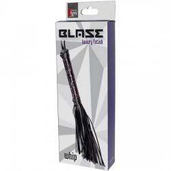 BLAZE WHIP PURPLE. Flogger de 24 cm de largo con cuerdas de aspecto de cuero. Asa de fácil agarre hecha de material de aspecto de cuero con un diseño estampado negro y púrpura elegante y brillante. El flogger tiene una cómoda correa para la muñeca. Flogger púrpura con cuerdas de aspecto de cuero. Asa fuerte y resistente Diseñado para satisfacer tus deseos más eróticos. Acaricia suavemente el cuerpo de tu amante para aumentar la anticipación y construye hasta llegar a latigazos cortos y agudos para llevar el placer a niveles increíbles.. Medidas de la caja: 23,5 x 7,5 x 3,5. Longitud del producto en cm.: 38. Color: Púrpura. Material: PVC / PU / Neoprene
