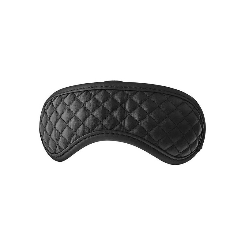BLAZE MASK DIAMOND BLACK. Esta máscara para los ojos de la colección Blaze de productos de bondage tiene un diseño acolchado con puntada de diamante en cuero vegano. Para mayor comodidad al usarla, la máscara está forrada con un neopreno suave y duradero. ¡Esta máscara acolchada para los ojos es perfecta para aquellos que les gusta anular uno de los sentidos durante una sesión de bondage, ya que esto hace que los otros sentidos sean más sensibles!. Medidas de la caja: 23,5 x 7,5 x 2. Longitud del producto en cm.: 19,5. Color: Negro. Material: PVC / PU / Neoprene